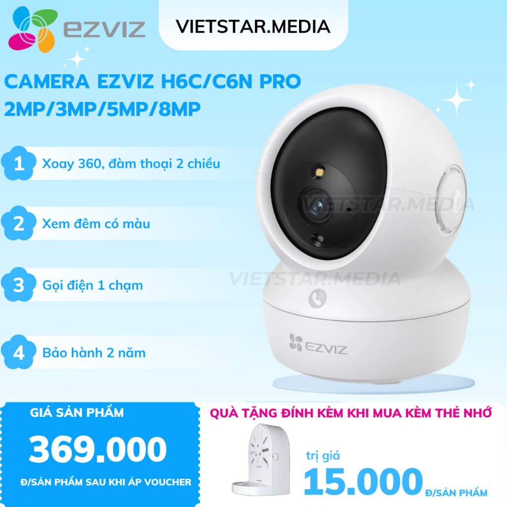 | [Choice] Camera Wifi Trong Nhà Xoay 360 Ezviz H6C-PRO+ 64G - C6n Ty+ 2m 4m 2k 1080p, Full Hd | 34.4% | 419,050₫ | 4 | Mở Shopee | ||