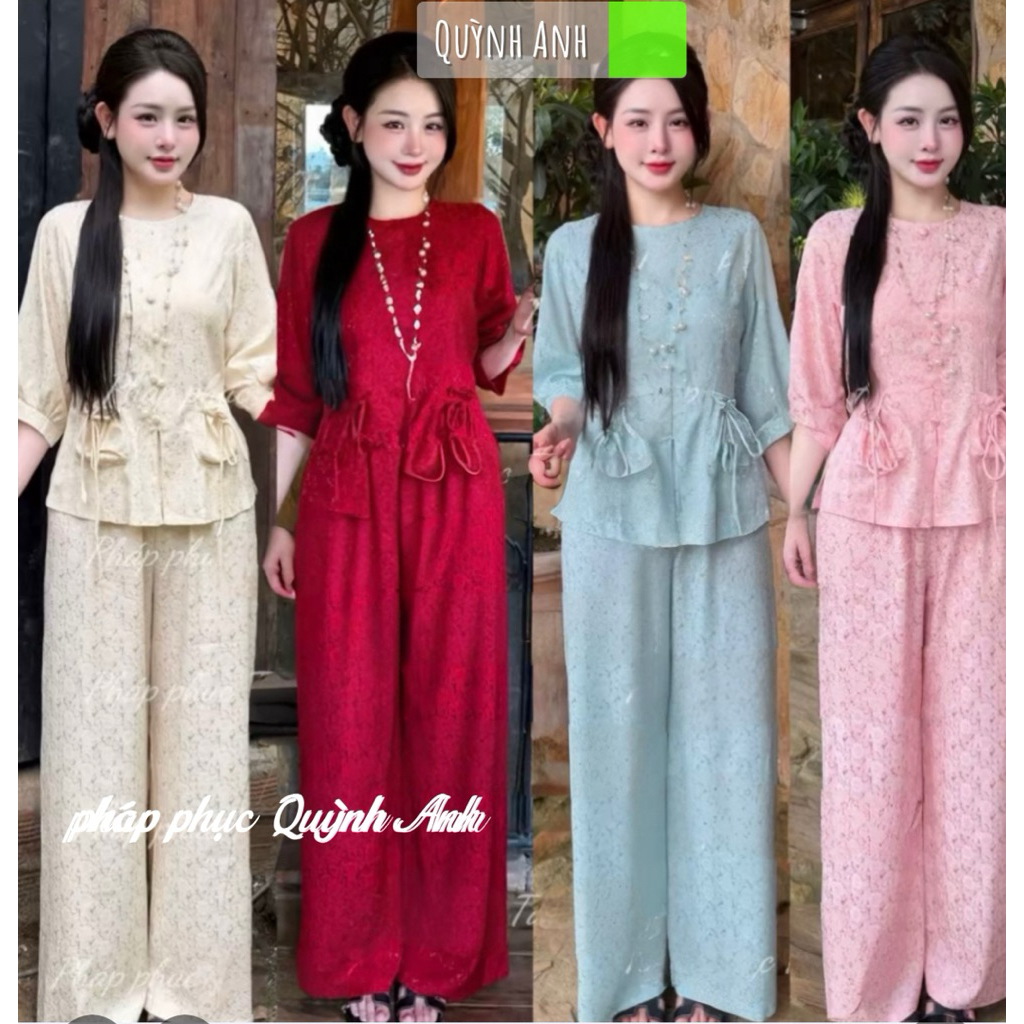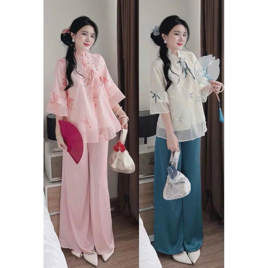 | Set bộ lam nữ áo cổ trụ đính nơ dây tay lửng loe tơ thêu hoa bướm phối quần dài suông phi lụa diện tết nhauyentrend | 68.08% | 319,999₫ | 331 | Mở Shopee | ||