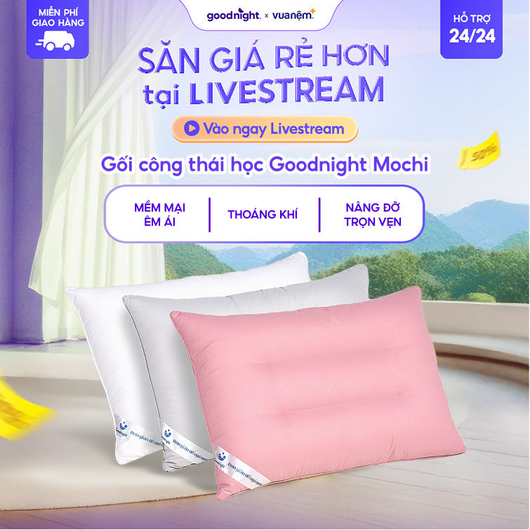 | Gối Ngủ Goodnight Mochi 45x65cm, Gối Gòn Lông Vũ, Ruột Gối Nằm, Gối Công Thái Học | 51.43% | 262,710₫ | 42 | Mở Shopee | ||