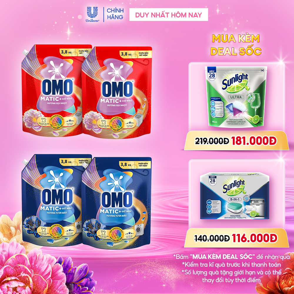 | Combo 2 Nước giặt OMO Matic Chuyên Gia Giữ Màu 3.8KG (túi) | 9.8% | 312,200₫ | 33 | Mở Shopee | ||