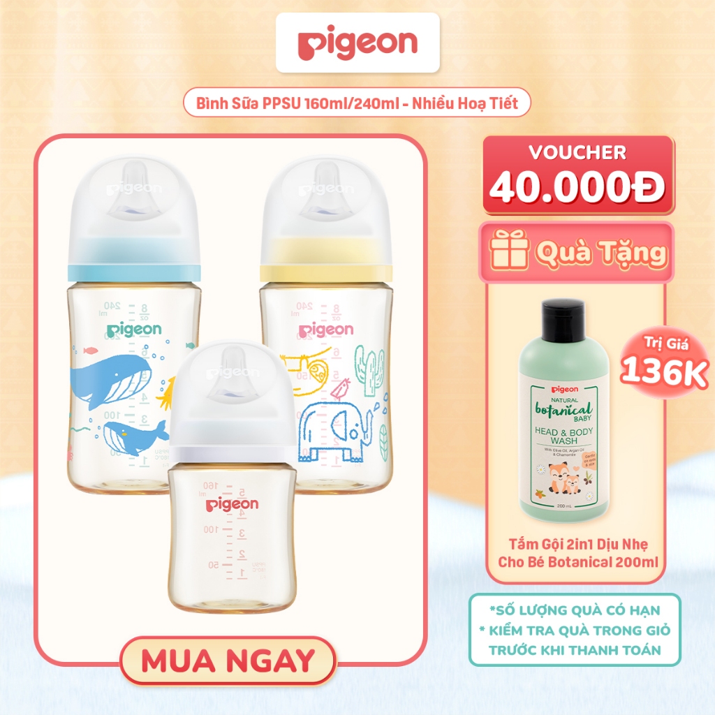 | Bình Sữa Pigeon PPSU Softouch Baby-Friendly World 160ml/240ml - Nhiều Hoạ Tiết | 13.84% | 544,999₫ | 156 | Mở Shopee | ||
