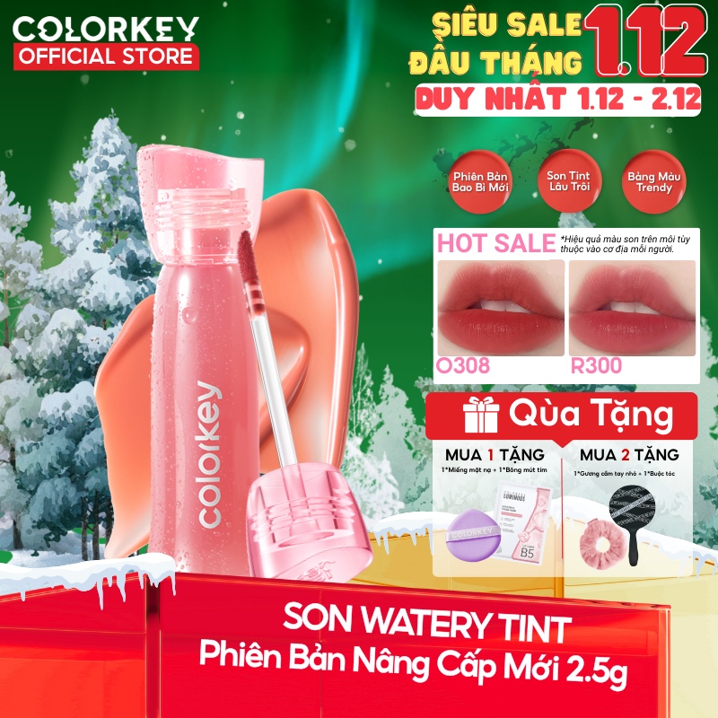 | Son COLORKEY Watery Tint, Lì Mịn Nhẹ Môi, Không Dính, Lâu Trôi, Dưỡng Ẩm, Son Môi Lì 2.5g | 22.8% | 226,860₫ | 741 | Mở Shopee | ||