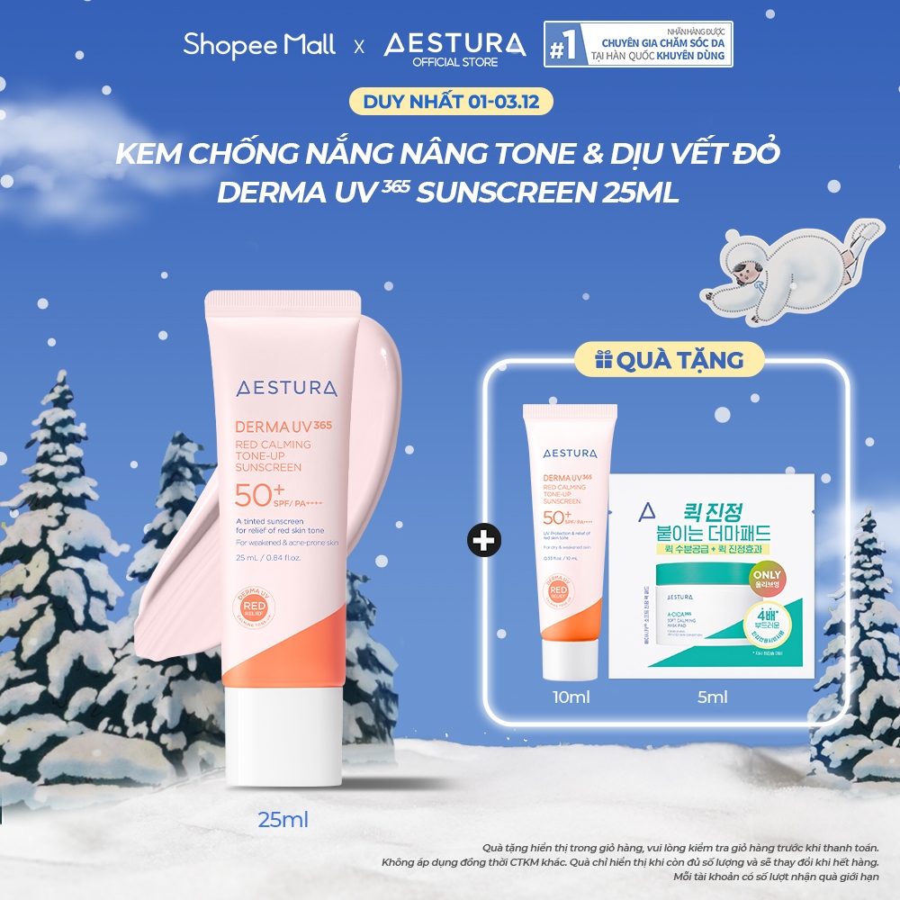 | Kem chống nắng nâng tone AESTURA DERMA UV365 Red Calming Tone-up Sunscreen 25ML | 3.35% | 222,440₫ | 7 | Mở Shopee | ||