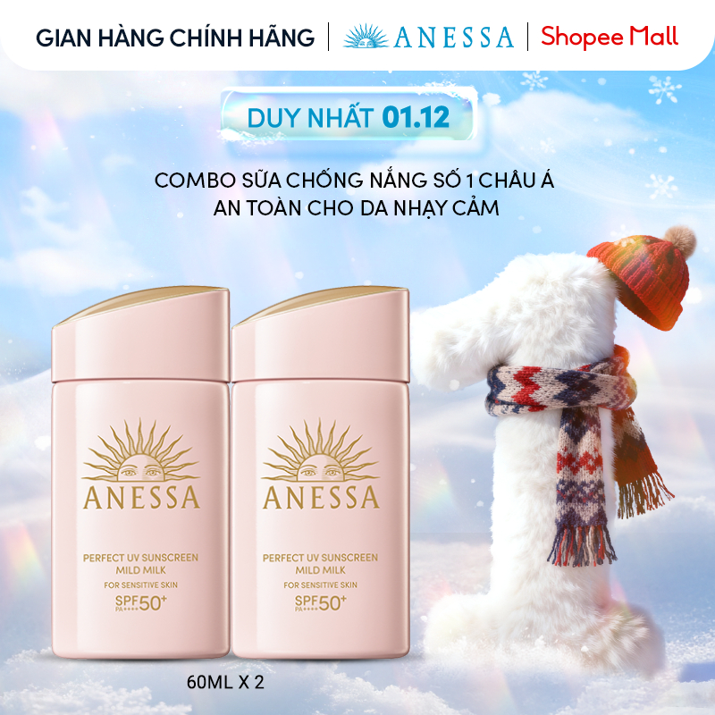 | Combo Sữa chống nắng dưỡng da dịu nhẹ an toàn cho da nhạy cảm và trẻ em Anessa Mild Milk SPF50+ PA++++ 60mlx2 | 34.73% | 1,403,999₫ | 35 | Mở Shopee | ||