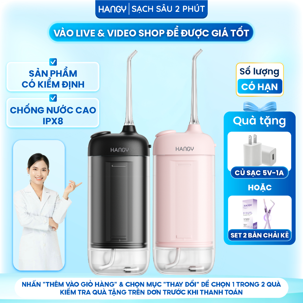 | Máy tăm nước cá nhân mini HANGY O16 - HM23 Chống nước IPX8, Công nghệ tia nước sạch sâu êm ái, Đổi mới trong 12 tháng | 25.38% | 382,860₫ | 756 | Mở Shopee | ||