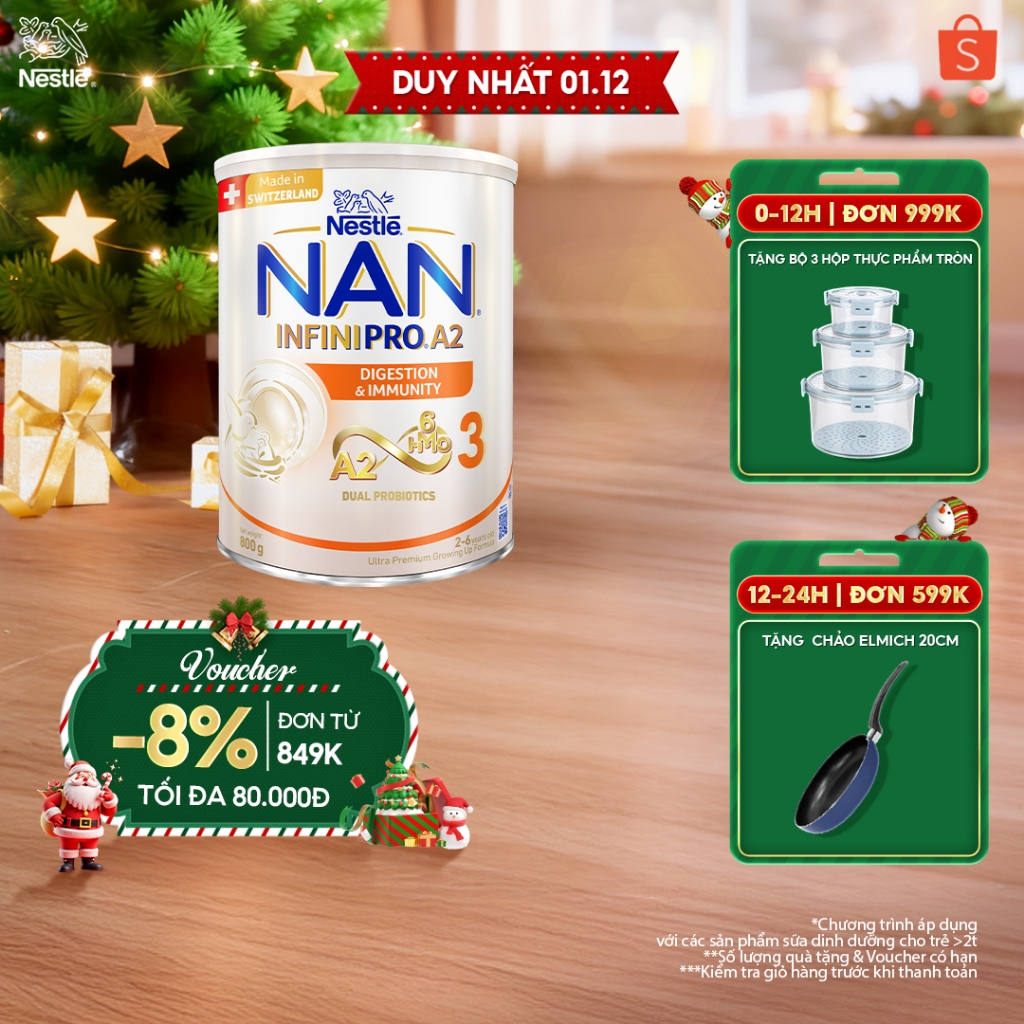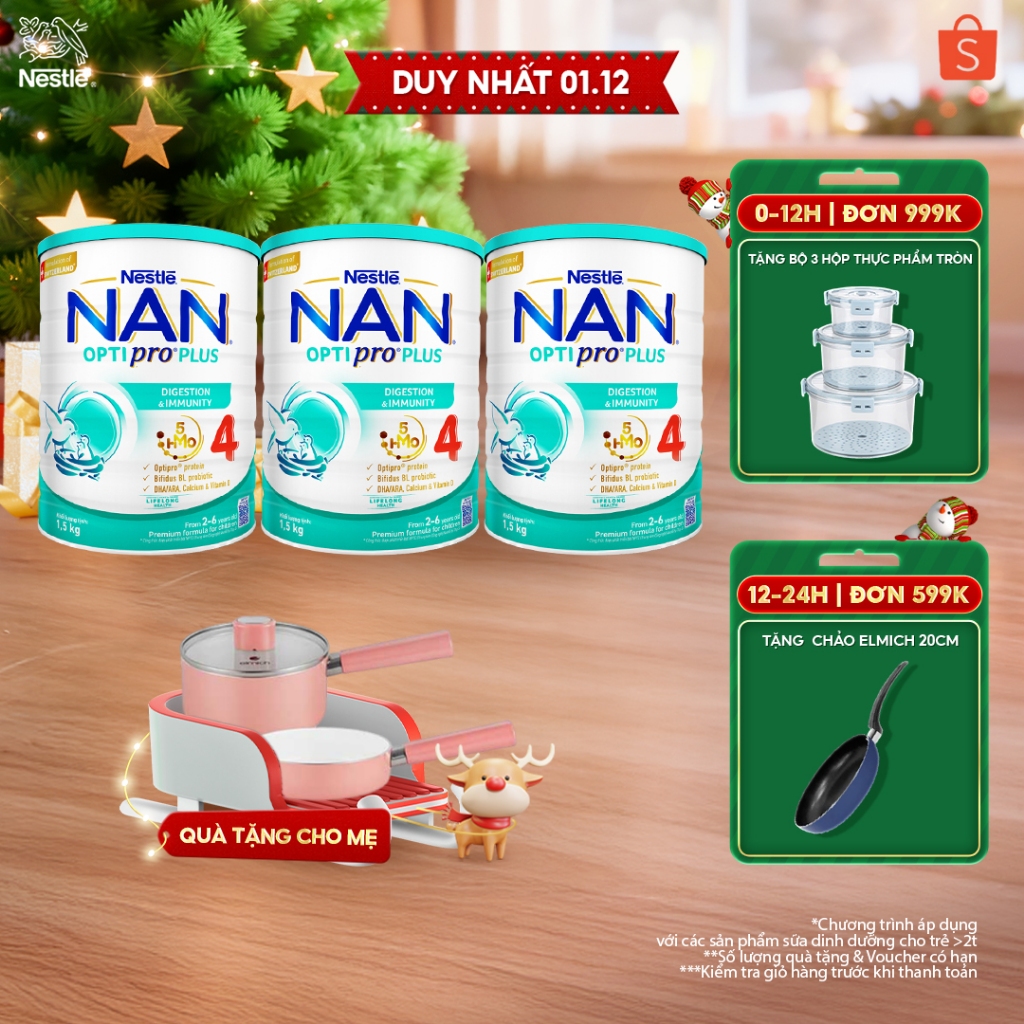 | [Tặng Bộ nồi chảo chống dính Elmich] Bộ 3 lon Sữa bột Nestlé NAN OPTIPRO PLUS 4 1500g/lon với 5HMO Giúp tiêu hóa tốt | 35.42% | 3,302,999₫ | 15 | Mở Shopee | ||