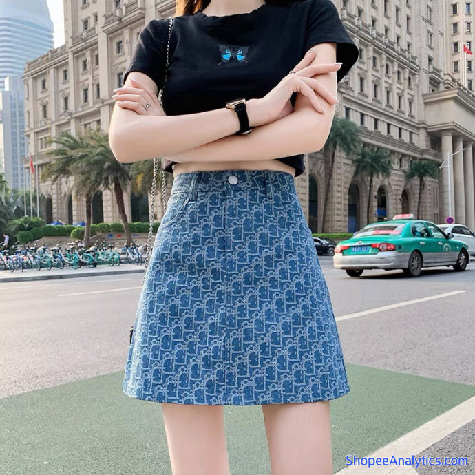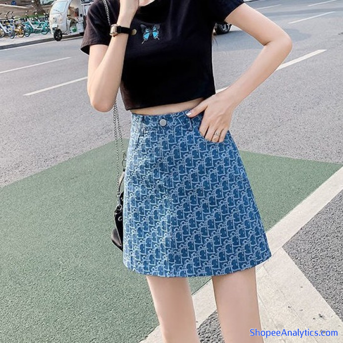 Chân Váy Chữ A Cạp Cao Họa Tiết_Kèm Quần Trong V22 chất liệu Jean dày dặn, co giãn nhẹ mặc thoải mái