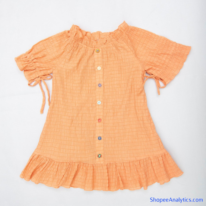 *Đầm xoè thô cổ tròn nhún bèo, Tay bồng ngắn, Cửa tay nhún bèo