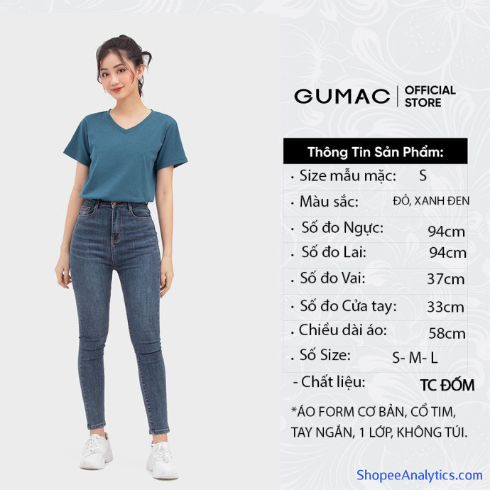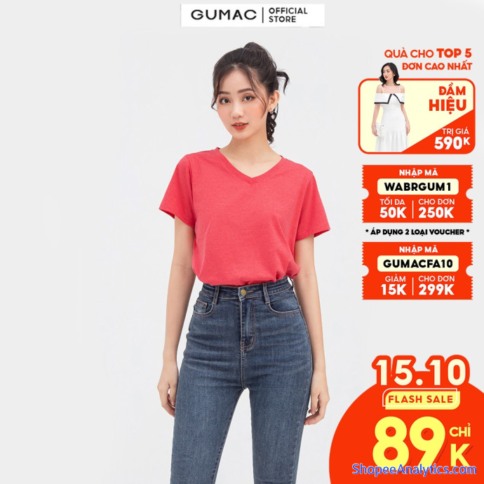 Tổng thể Áo thun nữ cổ tim cơ bản GUMAC nhiều màu, form cơ bản ATB808 được đánh giá trung bình 4.91/5 điểm dựa vào 540 đánh giá qua 1,345 lượt mua hàng (Cập nhập ngày 16/10/2021).