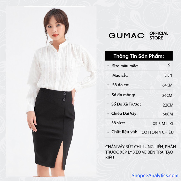 Chân váy bút chì xẻ tà GUMAC ôm body quyến rũ VB674