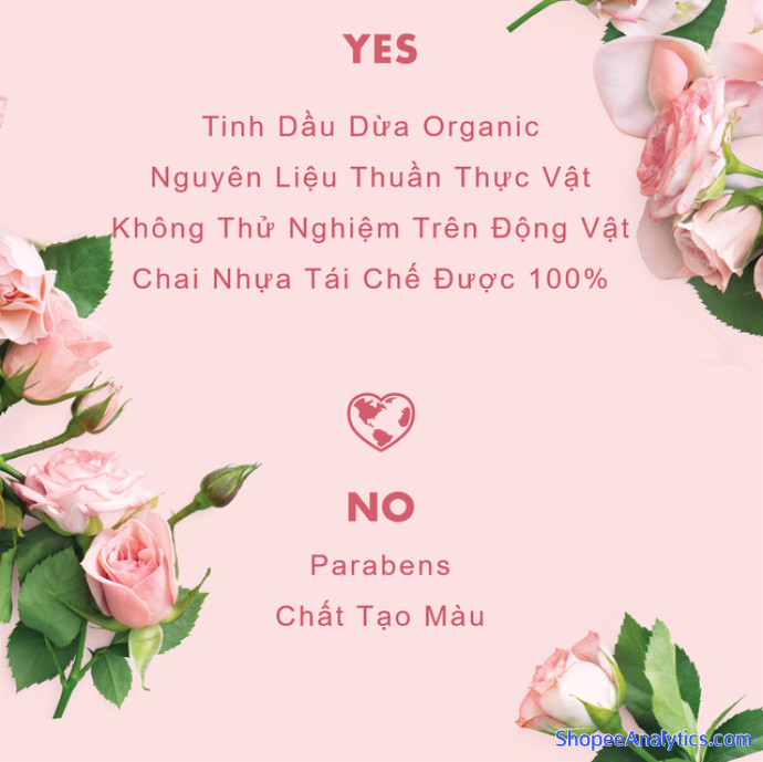 Thành phần: Water, Myristic Acid, Lauric Acid, Potassium Hydroxide, Potassium Chloride, Sodium Laureth Sulfate, Palmitic Acid, Glycol Distearate, Perfume, Cocamidopropyl Betaine, Phenoxyethanol, Hydroxypropyl Methylcellulose , Sodium Chloride, Tetrasodium EDTA, Glycerin, BHT, Etidronic Acid, Piroctone Olamine, Propylene Glycol, Stearic Acid, Citric acid, Sodium Benzoate, Cocos Nucifera (Coconut) Oil, Astrocaryum Murumuru Seed Butter, Rosa Damascena Flower Extract, Helianthus Annuus (Sunflower) Seed Oil, Tocopherol