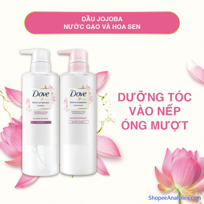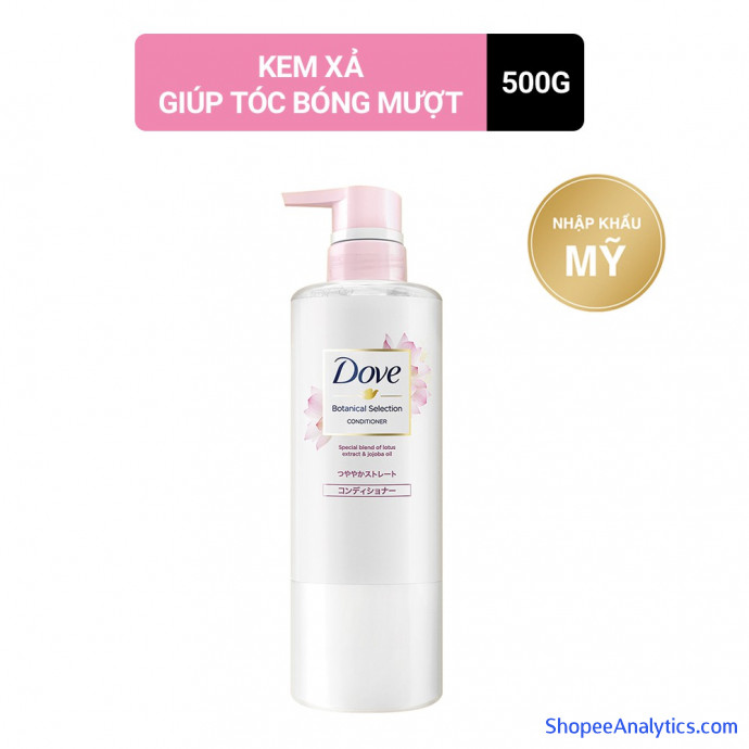 2.Kem xả Dove giúp tóc bóng mượt chiết xuất Hoa sen & Dầu Jojoba Botanical Selection 500gr