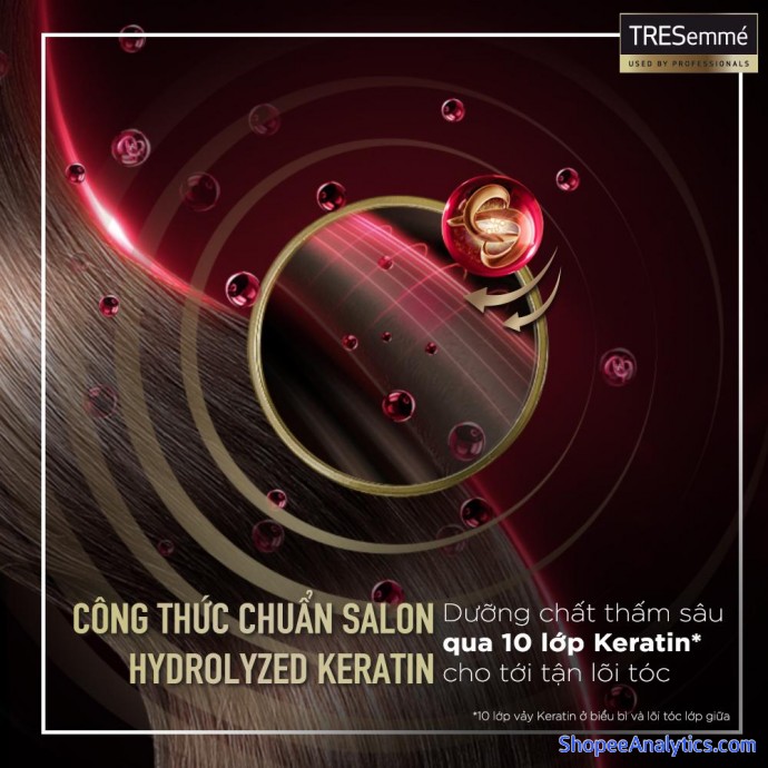 Lần đầu tiên TRESemmé giới thiệu công nghệ MỚI vượt trội nhất từ trước tới nay từ TRESemmé Keratin Smooth. Công thức ưu việt CHUẨN SALON được đặc chế với dưỡng chất Keratin Thủy Phân và các Hạt Dưỡng Chất Mềm Mượt Siêu Nhỏ giúp làm sạch và thấm sâu tới 10* lớp cho tới tận lõi tóc, loại bỏ khô - xơ - rối, cho bạn mái tóc vào nếp suôn mượt chuẩn salon suốt ngày dài. Sản phẩm đi cùng công thức mùi huơng cuốn hút MỚI - Giữ dài lâu tới 48 Giờ.