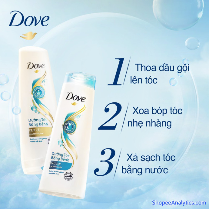 - Dòng Dove Dưỡng Tóc Bồng Bềnh MỚI với Công nghệ Micellar và Oxyfusion độc đáo, bao gồm các thành phần dưỡng tóc chứa Oxy. Công thức không bết dính giúp phục hồi độ mềm mượt của mái tóc, đồng thời giúp tóc bồng bềnh hơn đến 95%.