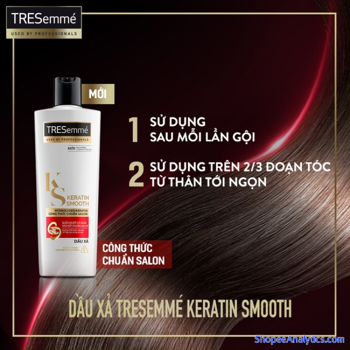 - Tóc không còn vào nếp suôn mượt sau cả ngày dài? Dưỡng tóc chuẩn salon tại nhà với sản phẩm các chuyên gia tạo mẫu tóc tin dùng - TRESemmé Keratin Smooth, cho tóc vào nếp suôn mượt đẹp chuâẩn salon mỗi ngày.