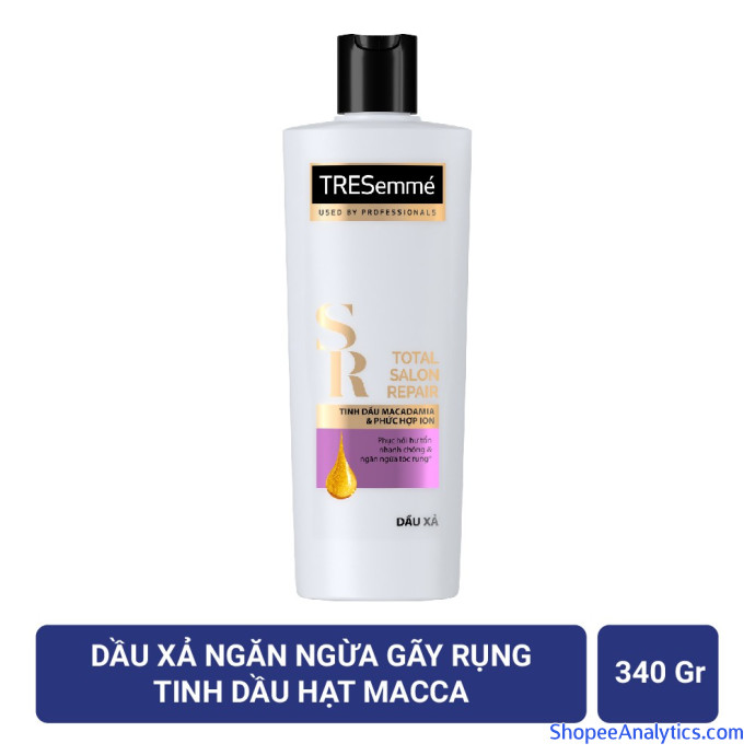 - Dầu xả TRESemmé Total Salon Repair nay được bổ sung Tinh dầu hạt Mắc-ca cùng với phức hợp Ion củng cố hàng rào bảo vệ tự nhiên của tóc khỏi hư tổn và gãy rụng.