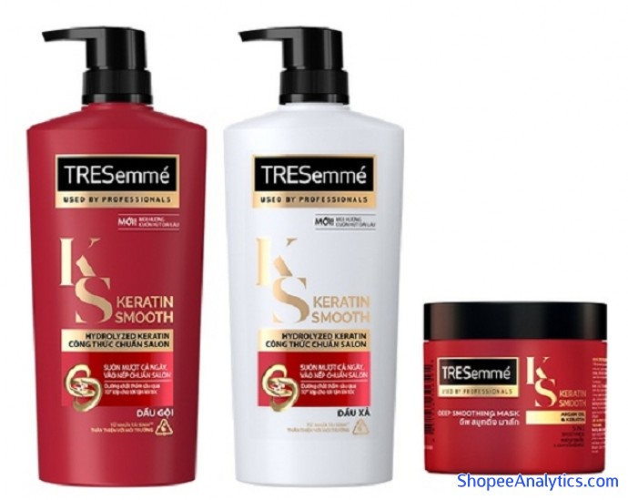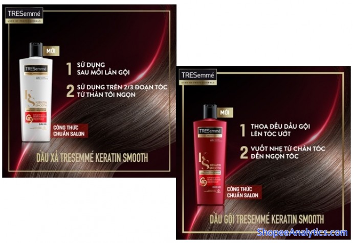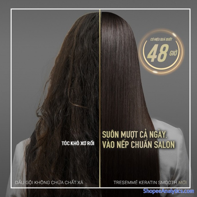 - Dầu gội TRESemmé Keratin Smooth Cho tóc khô xơ rối với công thức chuẩn salon Hydrolyzed Keratin Vào Nếp Suôn Mượt