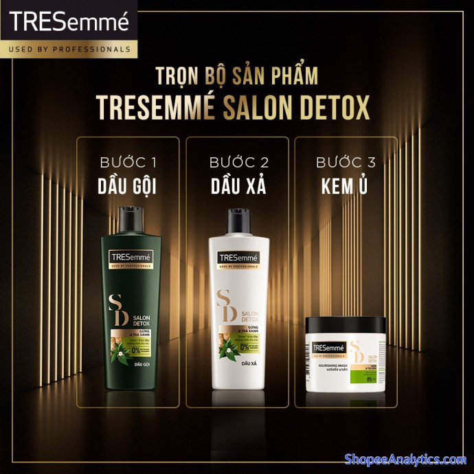 1/ Dầu gội TRESemmé Salon Detox giúp Detox tóc sạch sâu & bù đắp dưỡng chất cho mái tóc chắc khỏe.