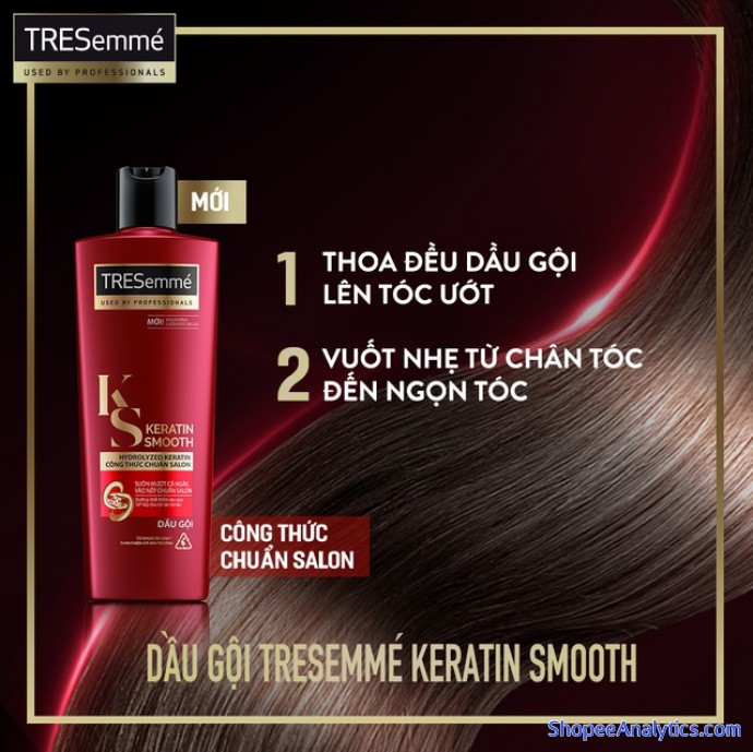 3/ Dầu gội TRESemmé Keratin Smooth cho tóc suôn mượt vào nếp suốt ngày dài
