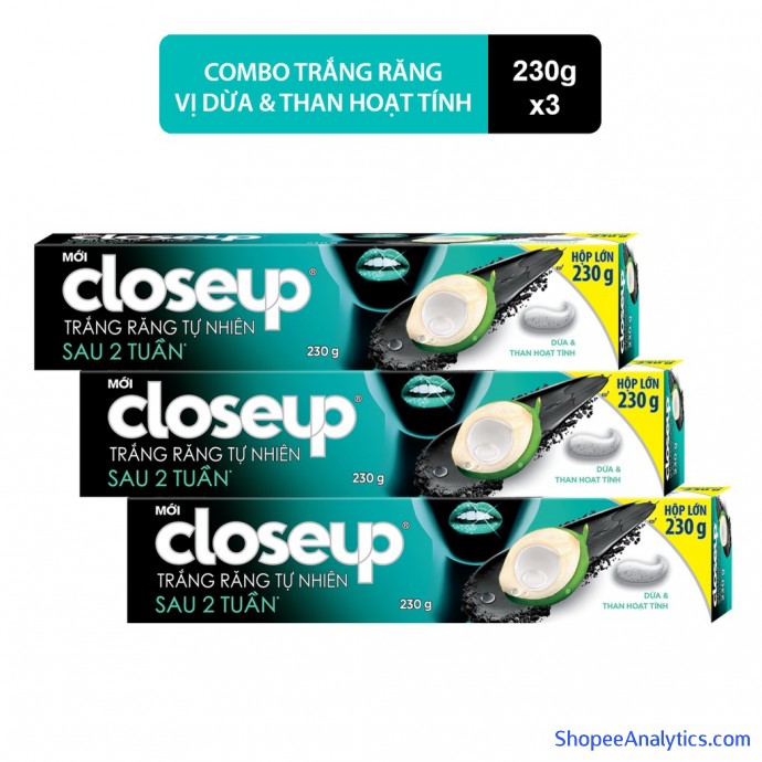 Tổng thể Combo 3 Kem đánh răng dạng gel sạch khuẩn Closeup Trắng Răng Tự Nhiên Vị Dừa Thơm Mát 230g/ hộp được đánh giá trung bình 4.90/5 điểm dựa vào 271 đánh giá qua 589 lượt mua hàng (Cập nhập ngày 14/10/2021).