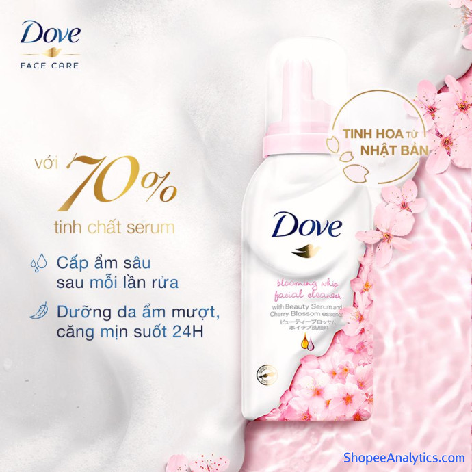 Với sứ mệnh nuôi dưỡng làn da khỏe đẹp, ẩm mượt mỗi ngày, Dove Face Japan giới thiệu đến bạn PHIÊN BẢN ĐẶC BIỆT Mousse hoa rửa mặt Dove Sakura bọt mịn sạch sâu - tốt cho da với 70% tinh chất serum & chiết xuất hoa anh đào, dưỡng ẩm cho da như dùng kem dưỡng!