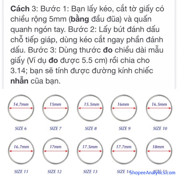 Tóm lại: Sau khi đã lấy con số chiều dài đo được chia cho 3.14 là ra size nhẫn của bạn .