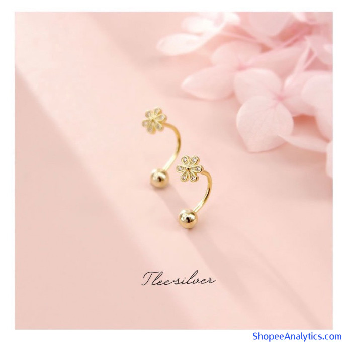💎💎💎💎 MÔ TẢ CHI TIẾT : Khuyên tai bạc Tlee, Bông tai chốt vặn dáng cong hình hoa năm cánh dịu dàng- TleeSilver