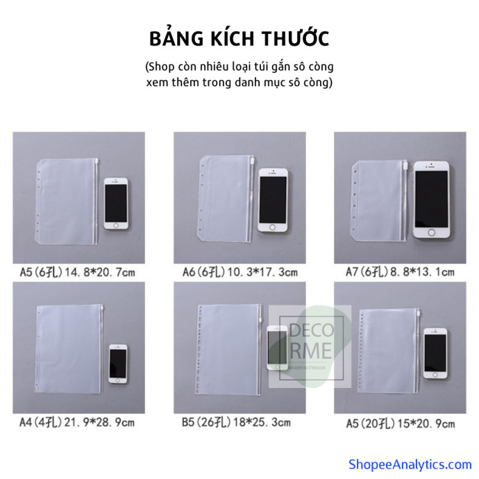 Tổng thể Túi zip pvc phụ kiện sổ còng planner A4 B5 A5 A6 A7 bìa thẻ sổ còng Decorme được đánh giá trung bình 4.96/5 điểm dựa vào 2,241 đánh giá qua 10,141 lượt mua hàng (Cập nhập ngày 08/10/2021).