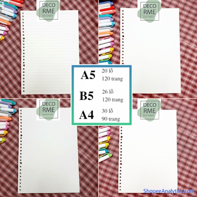 Tổng thể Ruột sổ còng giấy refill 20 26 30 lỗ A5 B5 A4 sổ planner bullet journal DECORME được đánh giá trung bình 4.97/5 điểm dựa vào 6,436 đánh giá qua 21,348 lượt mua hàng (Cập nhập ngày 14/10/2021).