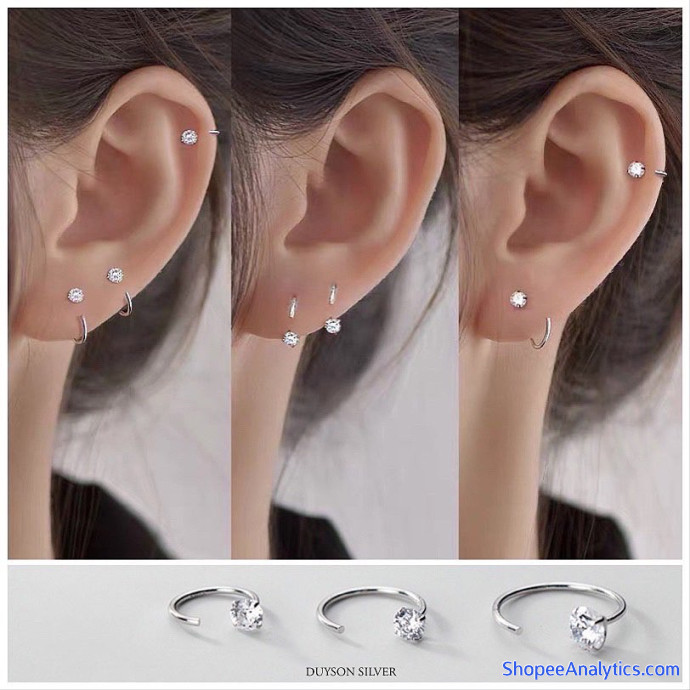 Bông tai bạc nữ Khuyên tai bạc nữ nụ đá dạng xỏ vòng Duyson Silver