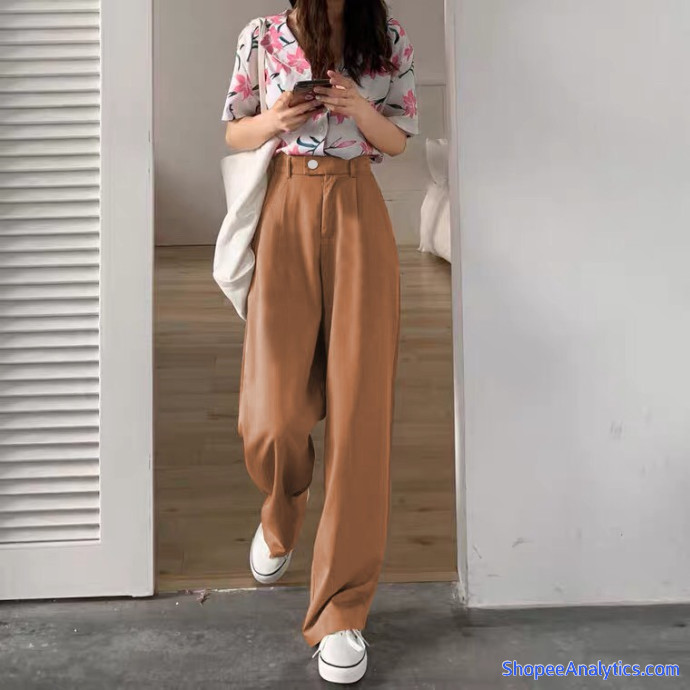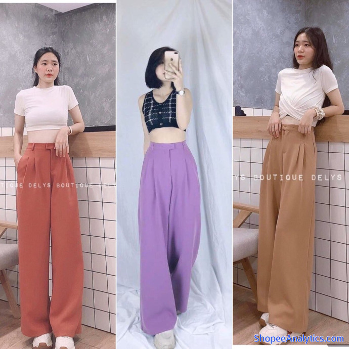 Mã sản phẩm: Quần tây ống suông rộng lưng cao 2 cúc có size ( tím - đen - kem - đỏ cam) BC303
