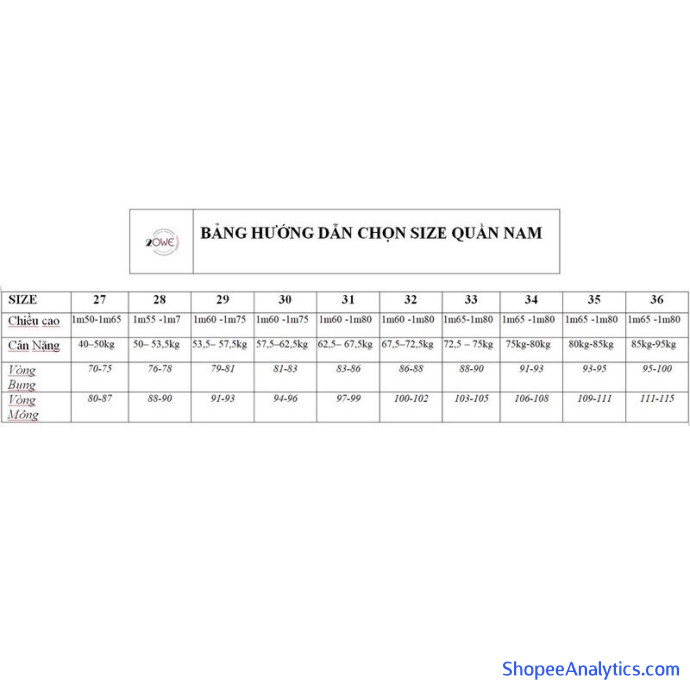 - gồm có đủ size: từ size 27 ( 40kg) -> size 36 (100kg).