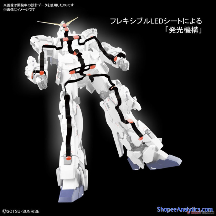 - Bandai đã cho ta thấy bộ led đc gắn bên trong khung xương tương tự như mẫu RG The Gundam Base Unicorn Led nhưng khác với mẫu RG, nó vẫn có thể cử động các khớp linh hoạt.