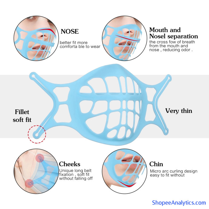 Mặt nạ được làm bằng chất liệu silicon thực phẩm mềm, mịn, thoải mái, có thể giặt và tái sử dụng, có thể giữ vải vào miệng để tăng không gian bảo vệ lớp trang điểm của phụ nữ và không bị dính son môi.