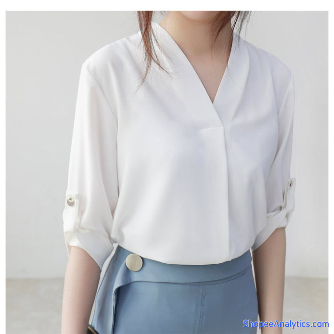 • Áo Sơ mi trắng công sở được Thiết kế dáng áo dáng suông rộng, tay lỡ cài nút, cổ đắp chéo, chất liệu co giãn tốt tạo được cảm giác thoải mái.