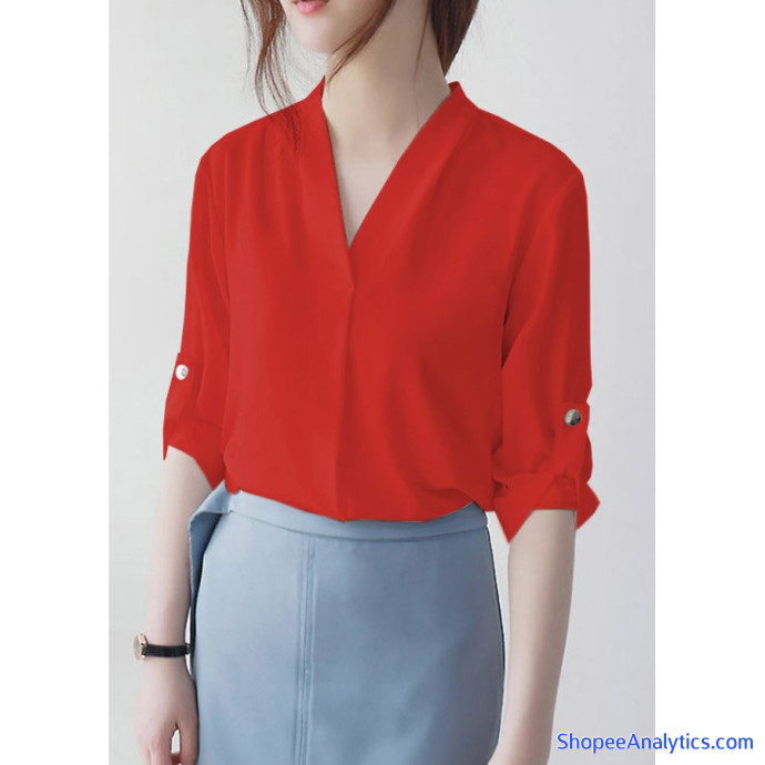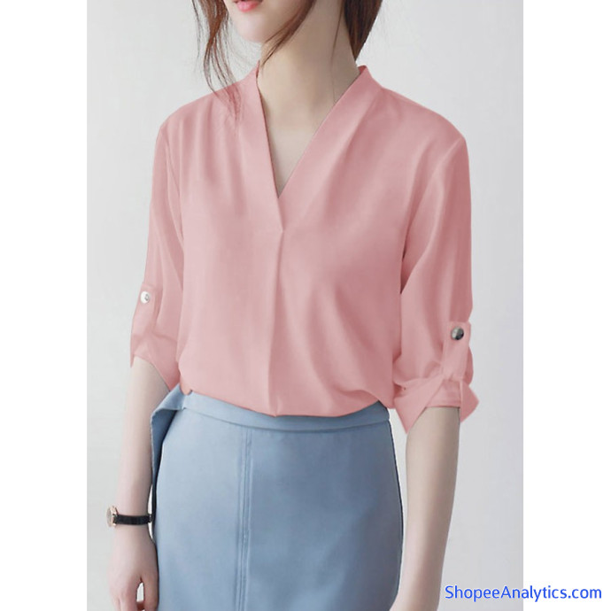 • Áo kiểu công sở được thiết kế không dây kéo chui đầu mặc vào rất dễ.