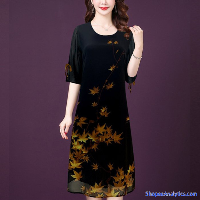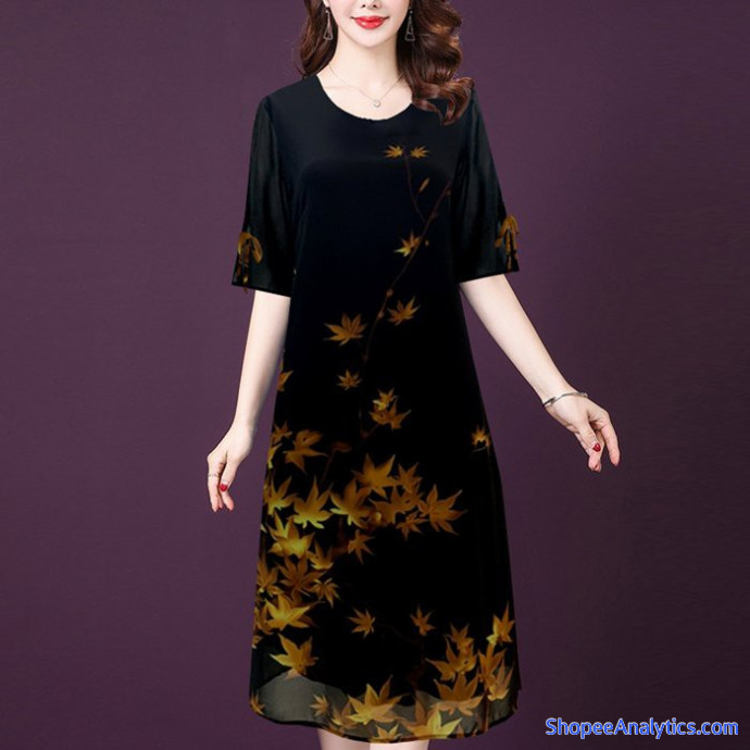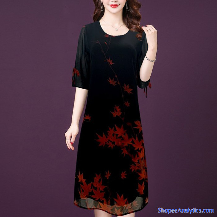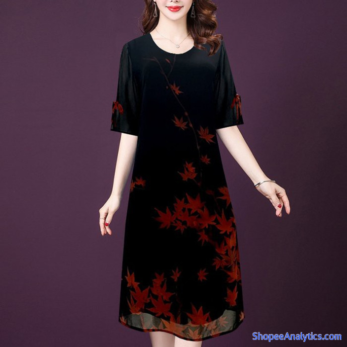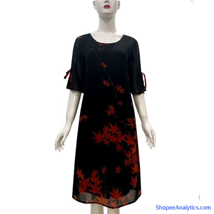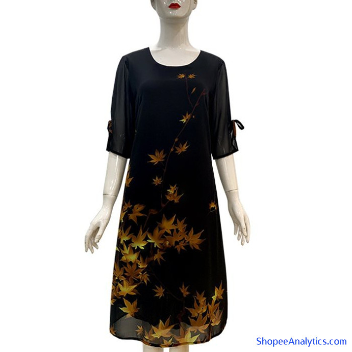 • Đầm suông tuổi trung niên được thiết kế dáng suông in họa tiết lá phong, tay ngắn cột nơ, có lót, có túi 2 bên, chất liệu không co giãn nhưng vẫn tạo được cảm giác thoải mái.