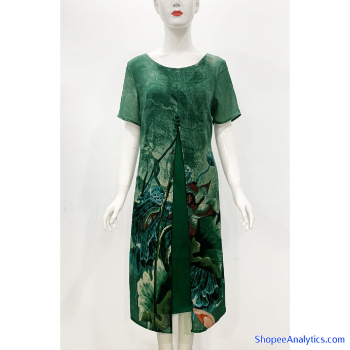 • Đầm suông dự tiệc trung niên được Thiết kế dáng đầm suông bigsize in họa tiết hoa sen xẻ tà, đính nút, tay ngắn, có lót, có túi 2 bên, chất liệu không co giãn nhưng vẫn tạo được cảm giác thoải mái.