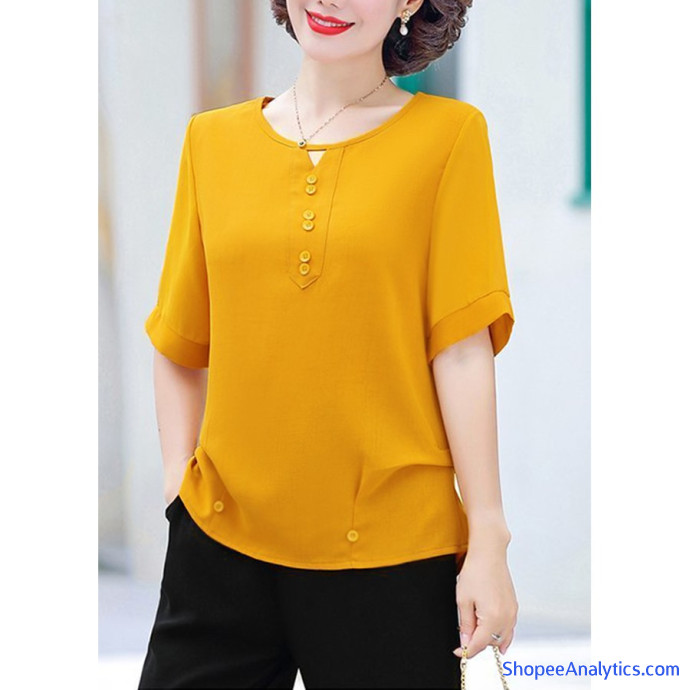 • Thiết kế áo trung niên dáng suông rộng, tay lỡ cài nút, cổ sơ mi, chất liệu co giãn nhẹ tạo được cảm giác thoải mái.
