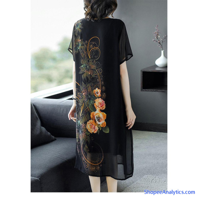• Đầm suông tuổi trung niên được thiết kế dáng suông in họa tiết tay ngắn, có lót, có túi 2 bên, chất liệu không co giãn nhưng vẫn tạo được cảm giác thoải mái.