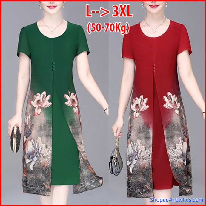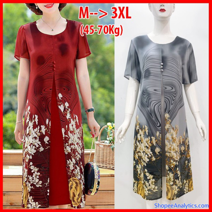 • Đầm suông tuổi trung niên được thiết kế dáng đầm suông in họa tiết hoa sen xẻ tà, đính nút, tay ngắn, có lót, có túi 2 bên, chất liệu không co giãn nhưng vẫn tạo được cảm giác thoải mái.