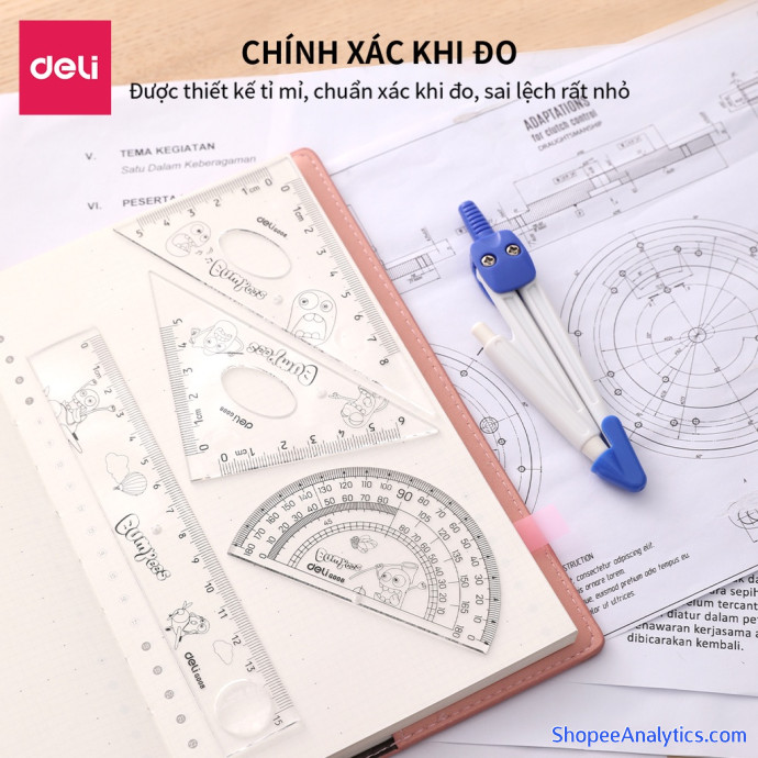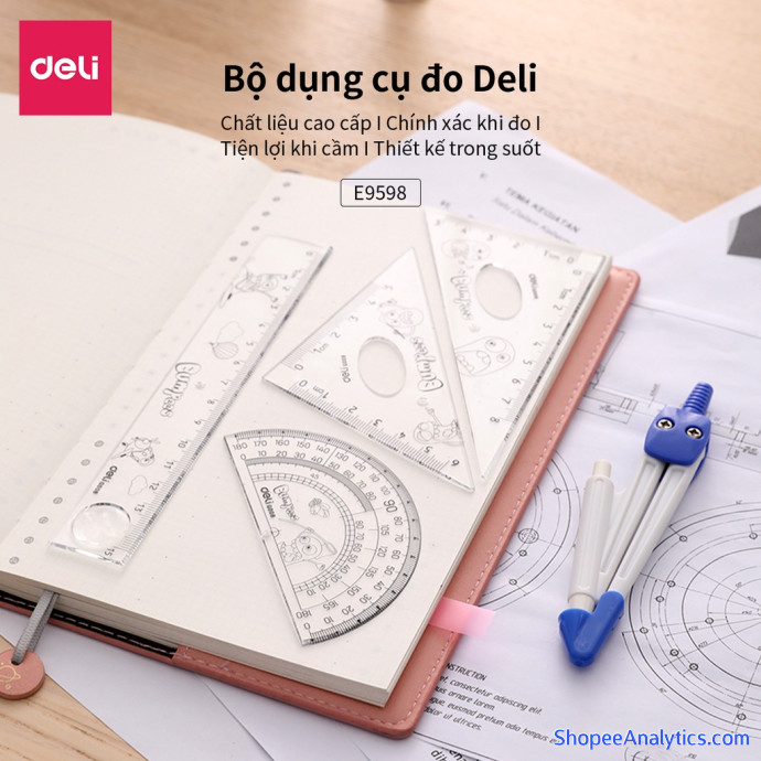 Tổng thể Bộ dụng cụ đo Deli, trong suốt gồm 5 dụng cụ/hộp - E9598 được đánh giá trung bình 4.99/5 điểm dựa vào 1,296 đánh giá qua 2,539 lượt mua hàng (Cập nhập ngày 07/10/2021).