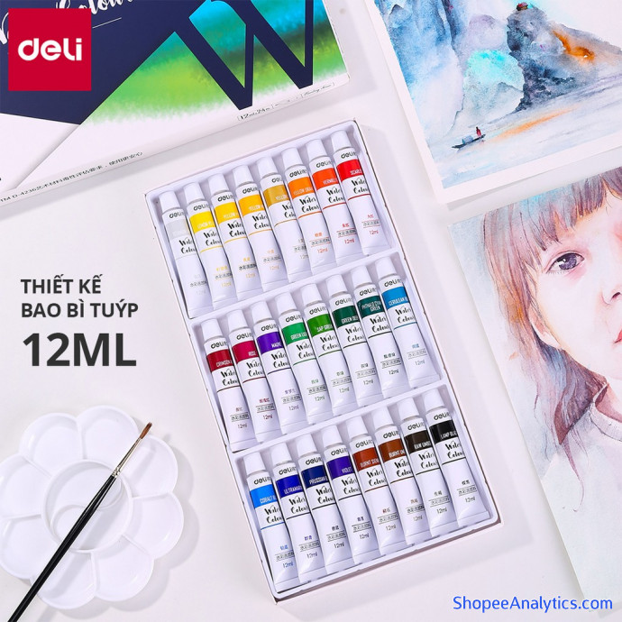Tổng thể Màu nước dạng tuýp cao cấp 12ml Deli - màu nước hòa tan che phủ tốt - 12 màu/18 màu/24 màu - 73850 / 73851 / 73852 được đánh giá trung bình 4.95/5 điểm dựa vào 1,923 đánh giá qua 4,290 lượt mua hàng (Cập nhập ngày 18/10/2021).