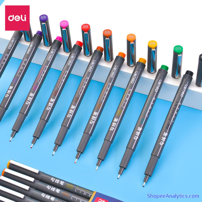 Tổng thể Bút đi nét liner 9 màu Deli - Ngòi bọc kim loại 0.5mm - Màu gốc nước - 9 màu 9 chiếc/Hộp - 1 Hộp - S572 được đánh giá trung bình 4.94/5 điểm dựa vào 117 đánh giá qua 258 lượt mua hàng (Cập nhập ngày 18/08/2021).