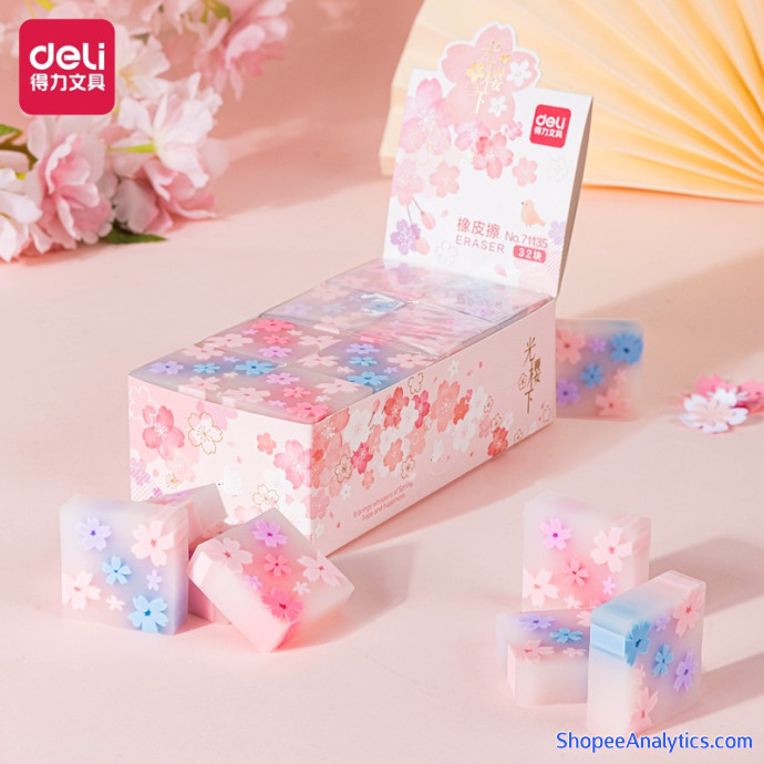 Tổng thể Gôm tẩy hình hoa anh đào Nhật Bản Deli -1 chiếc - dành cho học sinh - 71135/ 71136 được đánh giá trung bình 4.97/5 điểm dựa vào 146 đánh giá qua 494 lượt mua hàng (Cập nhập ngày 27/09/2021).