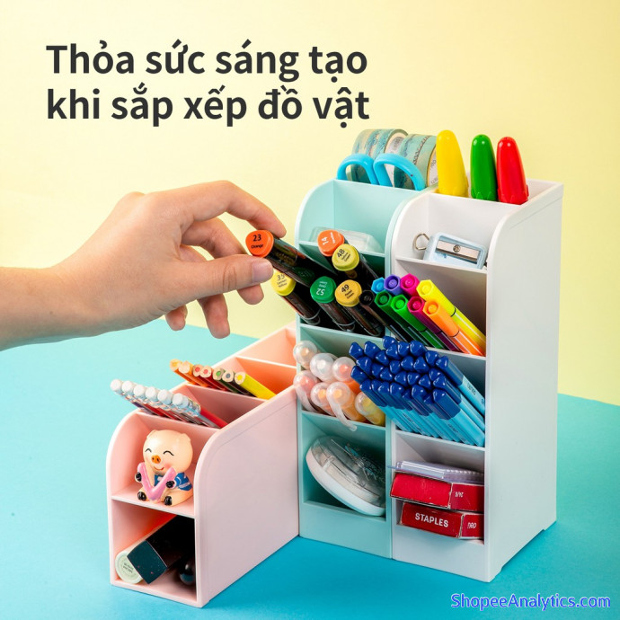 👉Tên sản phẩm: Kệ ống đựng bút mỹ phẩm 5 ngăn Deli