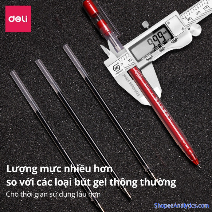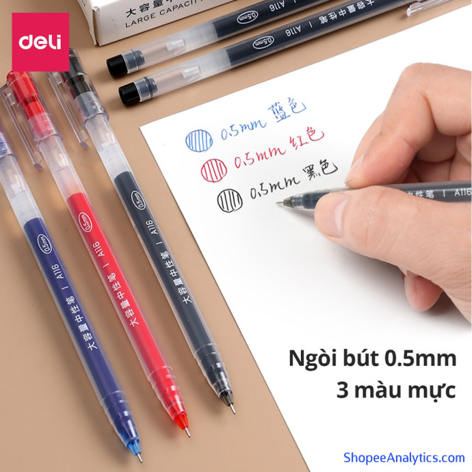 Tổng thể Bút gel 0.5mm Deli - viết được 800m -Bút bi nước - 1 chiếc - Màu đỏ / Xanh / Đen - A116 được đánh giá trung bình 4.97/5 điểm dựa vào 138 đánh giá qua 1,431 lượt mua hàng (Cập nhập ngày 01/09/2021).