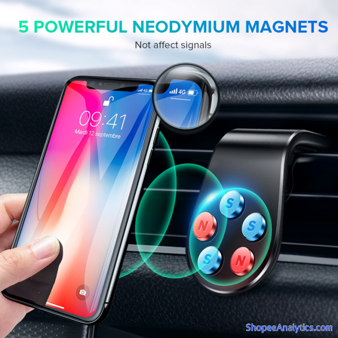2. 【LỰC HÚT TỪ TÍNH MẠNH MẼ】 - Giá đỡ từ tính gắn xe hơi đa năng có 5 nam châm N52 cực mạnh được tích hợp trong đầu gắn, và lực từ tính mạnh có thể đảm bảo thiết bị của bạn được cố định chặt chẽ mà không ảnh hưởng đến tín hiệu của thiết bị. (Ốp điện thoại dày hơn có thể cản trở khả năng bám của nam châm)