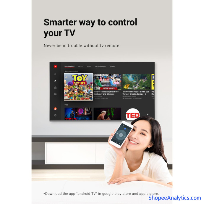 _ Không bao giờ gặp rắc rối khi không có điều khiển TV. (Tải xuống ứng dụng "Android TV" trong google play store và apple store)