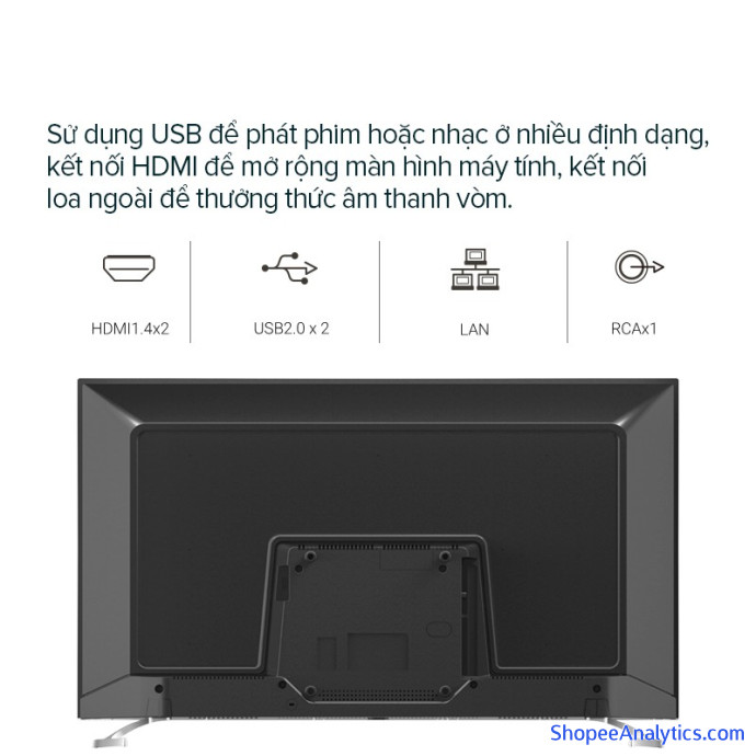 Các cổng: RF x 1; USB 2.0 x 2; HDMI 1.4 x 2; AV x 1; LAN x 1; OPTICAL x 1
